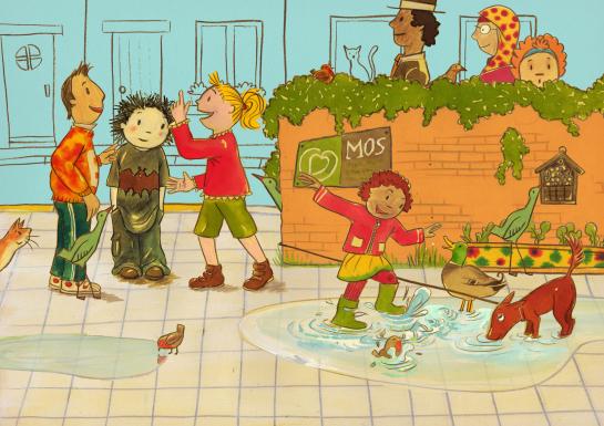 - Prent 8: zie je het insectenhotel? Kennen jullie het logo van MOS?