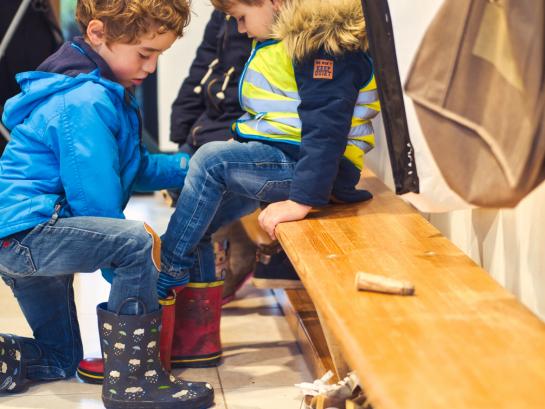 However, in Bossuit it can also be cool during those April mornings, when the classes go outside. ‘We notice that parents really have to warm up to the idea of their kids being outside the entire day at first’, says the principal. ‘Some parents really aren’t into the idea of their kids having to go home in dirty clothes.’ The school organizes information sessions on how the outdoor classes work. ‘We explain that every child needs some waterproof boots and a good coat for outside’, says Angélique. ‘Clothes should never be the reason they can’t play, right?’