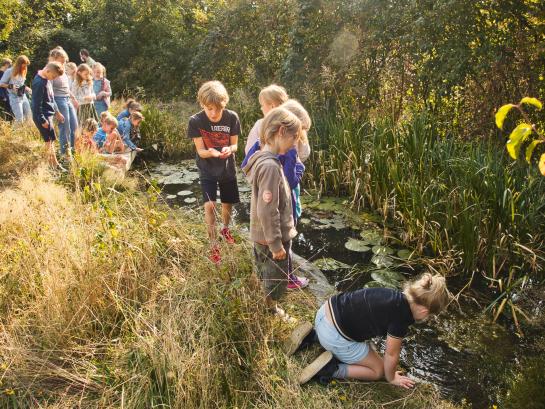 Pupils who calculate the surface area of the bike parking place or who determine insects in our own pond. In Freinet school ‘De Vlindertuin’, the world is the classroom. ‘We work based on experiences, with the countless learning opportunities outside the four walls of a classroom’, says principal Pieter Cnaepkens. ‘In our school every classroom has a door that leads outside.’