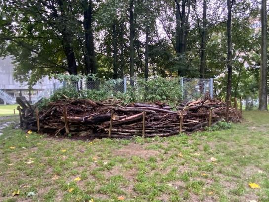 With the ecoteam, we have now planted a herb garden with a rainwater barrel. We have also planted 300 indigenous hedge plants at the edge of the campus and every winter we always plant one or two new trees. With a fallen tree, we made a seating area that is always used during playtime. We have made nest boxes and insect shelters, a compost heap, a vegetable garden and a branch wall. We also planted lots of raspberry plants and made an eye catcher.