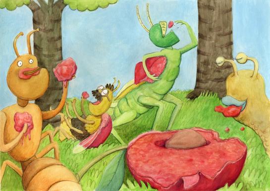 - Let the children tell a different story starting from the Ant who finds a cherry or other tasty snack (picture 1).