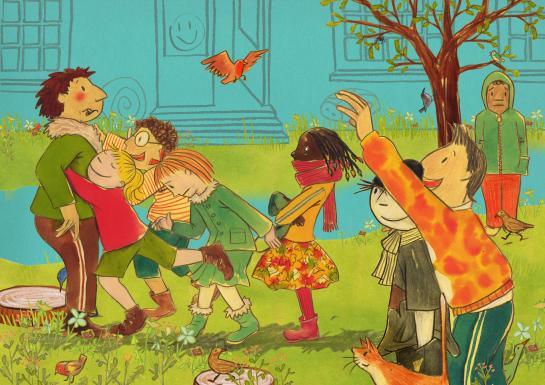 - Picture 1: why is Alida wearing a thick scarf? Which animals do you discover in the picture? What do you notice in connection with the playground? Can you find Alida, Sofie, Bilal and Dylan?