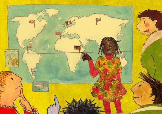 - Use picture 2 - Alida is from Kenya. Let them discover the shape of the continent 'Africa' on the picture. Give them the opportunity to find Africa on the world map or globe.