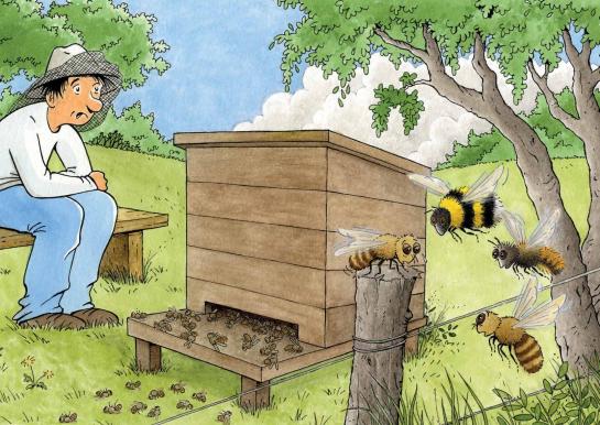 - Make the story more interesting together by adding other characters and dialogues: e.g. wife, daughter and/or son of farmer Jeff, another beekeeper,…