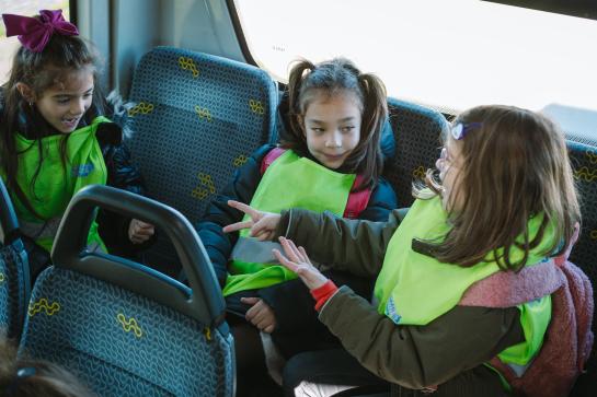 Thanks to the MOS-pass, Annemie and her class got there safely, sustainably and for free: "We always walk to the bus stop singing, it's great fun! Our stop was right next to the PNC, so we reached our destination quickly and safely. Additionally, the drivers and fellow travelers are always very friendly, so the tour itself also adds value to our trip each time." "I am very grateful for the MOS-pass," Annemie adds. "It's great to be able to open up the world of children this way without an additional cost. That makes me happy!"